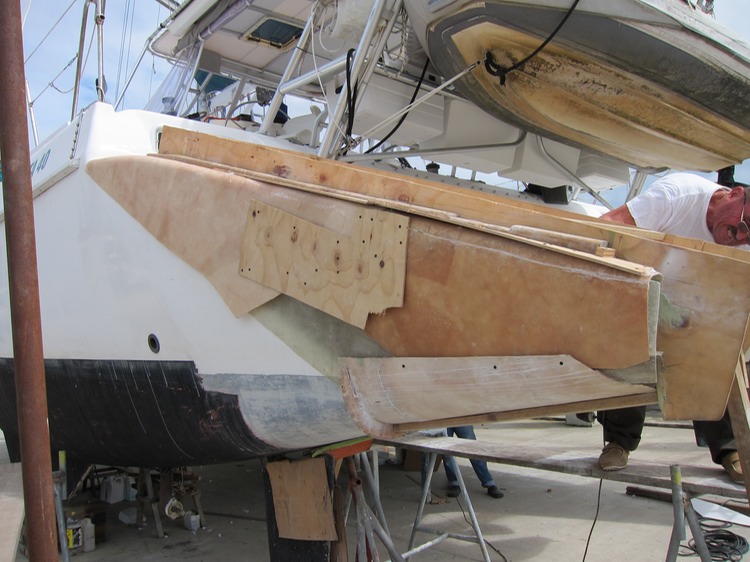 The result is a female mold of the exact template that will shape the outside of the new stern.