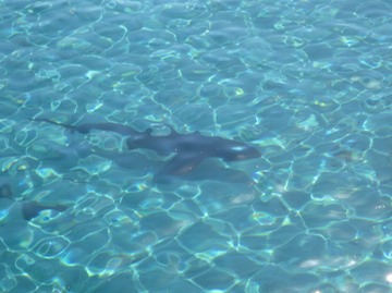 This island boasts a spectacular beach of white sand, an extensive harbor and great rocky crags to hike around on like the goats. The bay has some nice coral heads, but you’ll be sharing them with the resident sharks who are likely drawn here by the commercial fishing boats. Mark and John started a fishing session off in the bay and Mark dropped in right on top of a huge bull shark. Luckily he was well fed and swam past unperturbed while the divers leapt back into the dinghy.