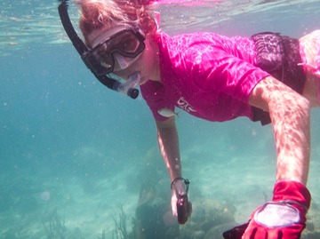 Some of the best picture-taking reefs are shallow, rocky areas with good sunlight, which is also where the fish nurseries can be found. Juvenile fish like to hide in the crevices of reefs and any other shady area that can offer protection from predators... like a sailboat prop, a moon jelly or a human. Oftentimes we get to swim with our own "personal fish".