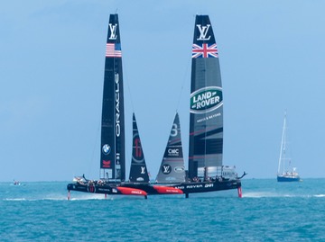 That brings us to Landrover BAR representing Britain. They came to Bermuda with a good standing and two extra points from previous Louis Vuitton series. They needed it since their performance has been a bit inconsistent during the qualifiers. Their starts have generally been very good with a few brilliant moves. Once out on the course, the small and not so small mistakes add up and they have had their share of losses. They also seem to suffer in lighter winds as we saw one day. Yet when the winds were high we saw a great duel between them and Softbank.