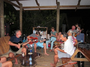 This was not an amateur music night! I counted seven guitars, a mandolin, ukulele, clarinet, harmonica & drum plus many singers. There was some impressive talent making music before the rains came.