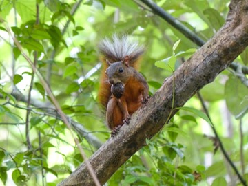 ...but I finally got a picture of this adorable little chattering squirrel that has a bright orange belly and tail.
