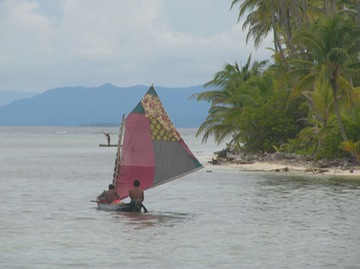 That being said, we are always amazed by the great amount of skill the Kuna's exhibit as they sit, stand and sail in their wooden ulus. With powerful strokes, they row steadily upwind in even the nastiest weather, feathering to keep a perfectly straight line.