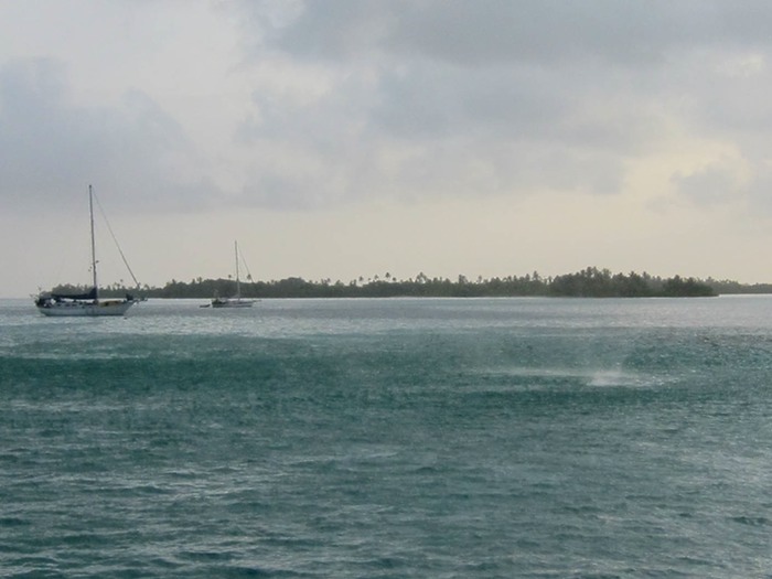Lightning and high winds, you'd think we'd get used to it (since our lightning strike, we don't). But wait, that's not all! What can we say about water spouts?! Well, let's see... two of them have passed through the same zone right behind Reach at anchor. The first time Michele heard something sounding like rain and saw a disturbed spot on the water heading our way. It would have been a curious focal rain storm, except now it became apparent that the water was spinning. Grabbing a camera, a few pictures can barely do justice to the progress of this spout that looked like a tasmanian devil was whipping between Reach & Kaija's Song in the span of a minute. After a few whooaahs and ahhhs, it was over.
