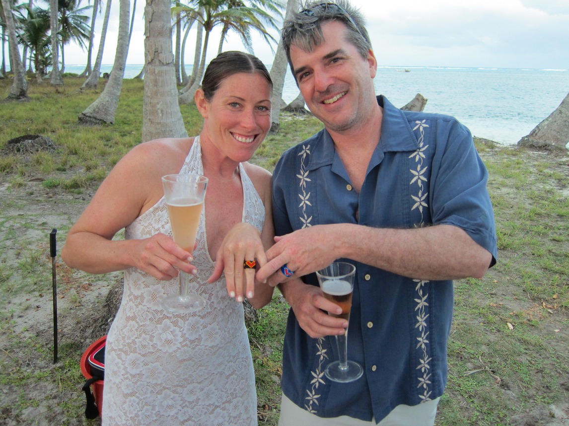 Interestingly, another activity came to mind for their vacation. Before arriving, Doug & Erin had the inspiration to look into the possibility of a wedding in paradise. Kaya asked around and another boater friend, Denny (Kokomo), happened to be a justice of the peace with a full marriage kit, so we participated in a lovely San Blas wedding on the island of Yansaladup!