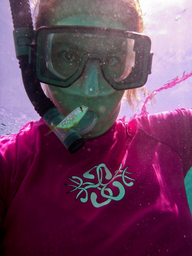 Some of the best picture-taking reefs are shallow, rocky areas with good sunlight, which is also where the fish nurseries can be found. Juvenile fish like to hide in the crevices of reefs and any other shady area that can offer protection from predators... like a sailboat prop, a moon jelly or a human. Oftentimes we get to swim with our own "personal fish".