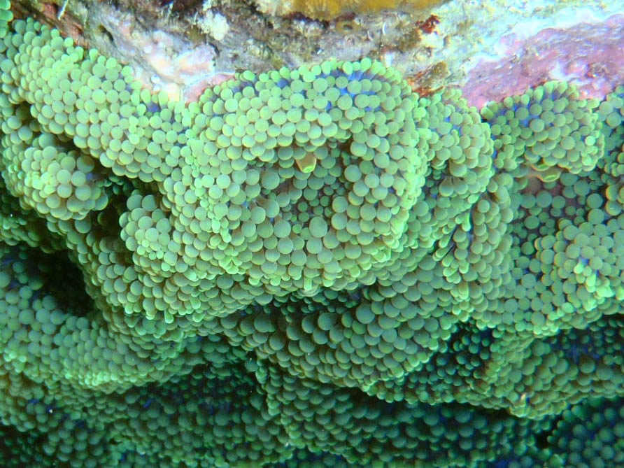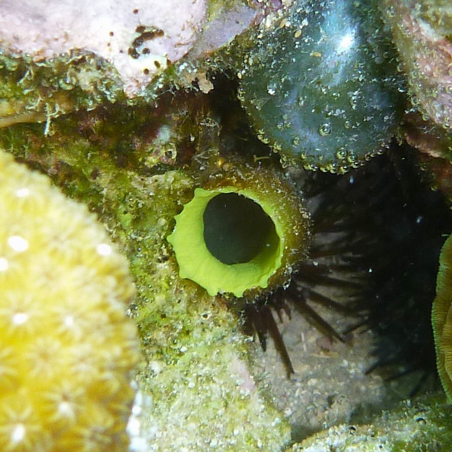 Green tube tunicate (next to a sea pearl)