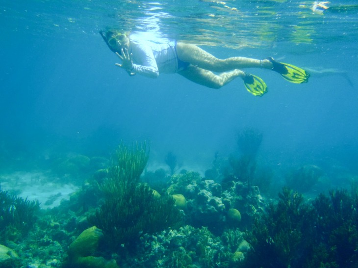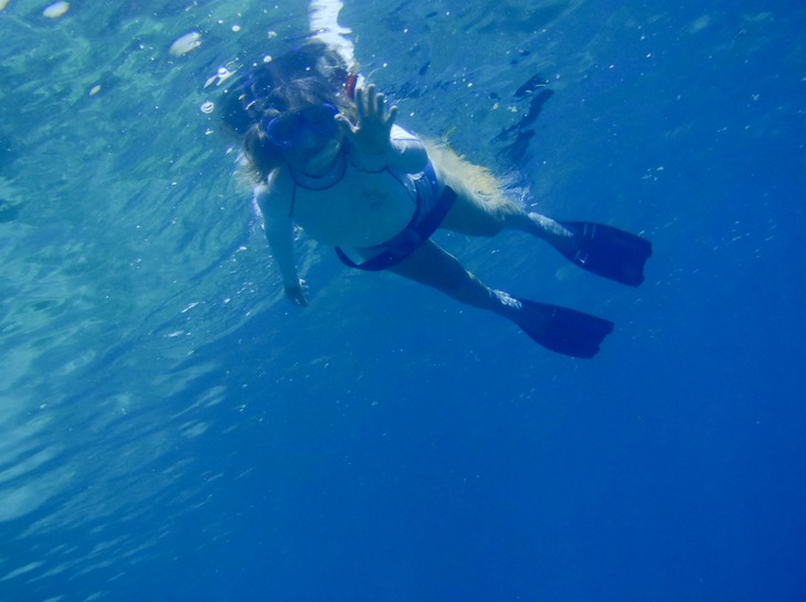 During one snorkel, Wendy, Kaija & I saw the resident dolphin family swimming nearby, but could not get too close to them as the adults were flanking the juveniles, presumably for protection.