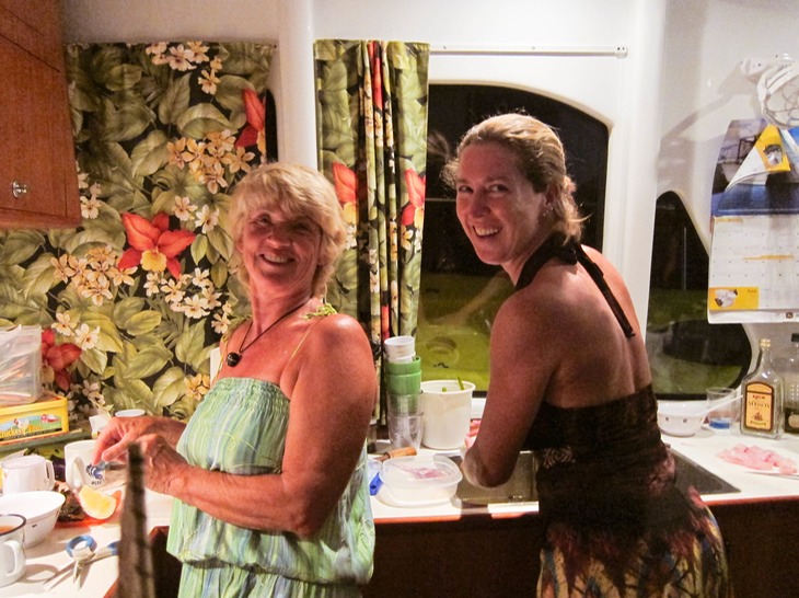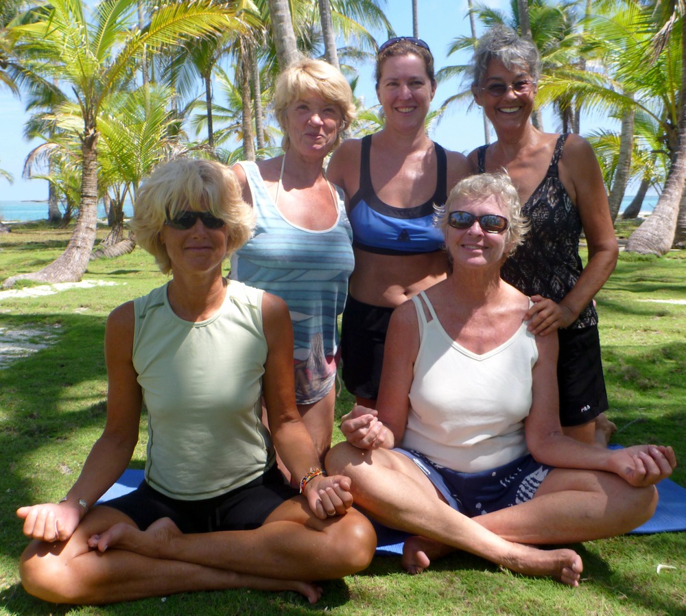 When cruising, each season brings the opportunity to meet new friends to share in the fun for yoga, potlucks, swimming & sunsets. This yoga group enjoyed their exercise and "girl time" off of the boat (don't laugh - you try living w/ your partner 24/7 in close quarters).
