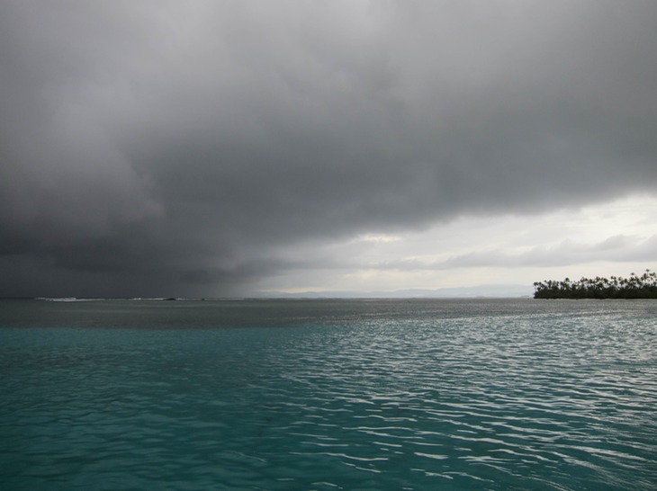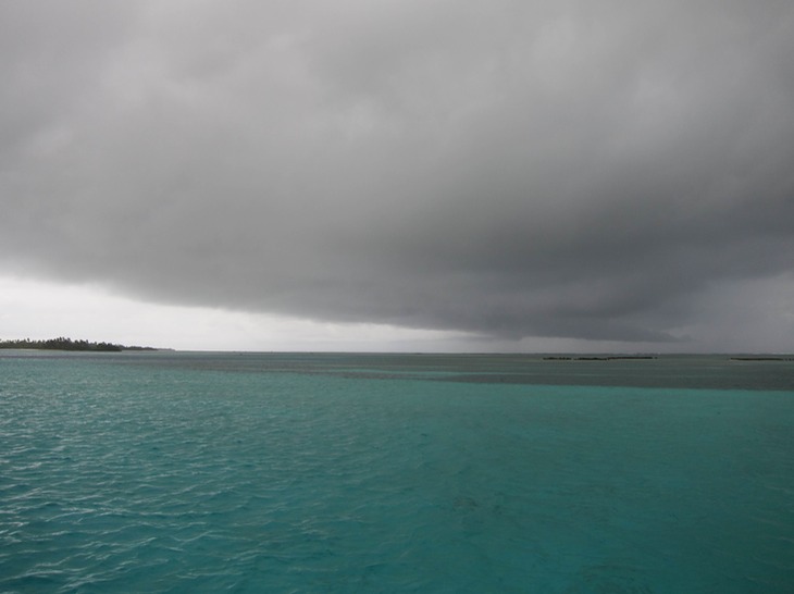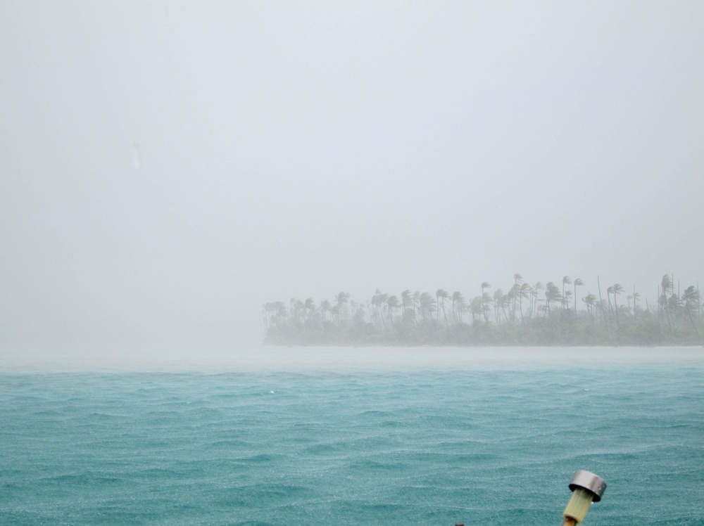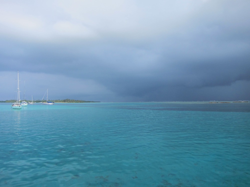 The weather is localized in the San Blas, being situated in a basin of the southern Caribbean sea in a semi-permanent low pressure region. This means that weather can be sucked into these islands from the mountains, barrel over the isthmus from the Pacific, or reach down to give us a taste of the tropical waves marching across us to the North. At least in the daytime we can usually see it coming, at times closing in from both sides. The rain, we'll take to filter into our water tank.
